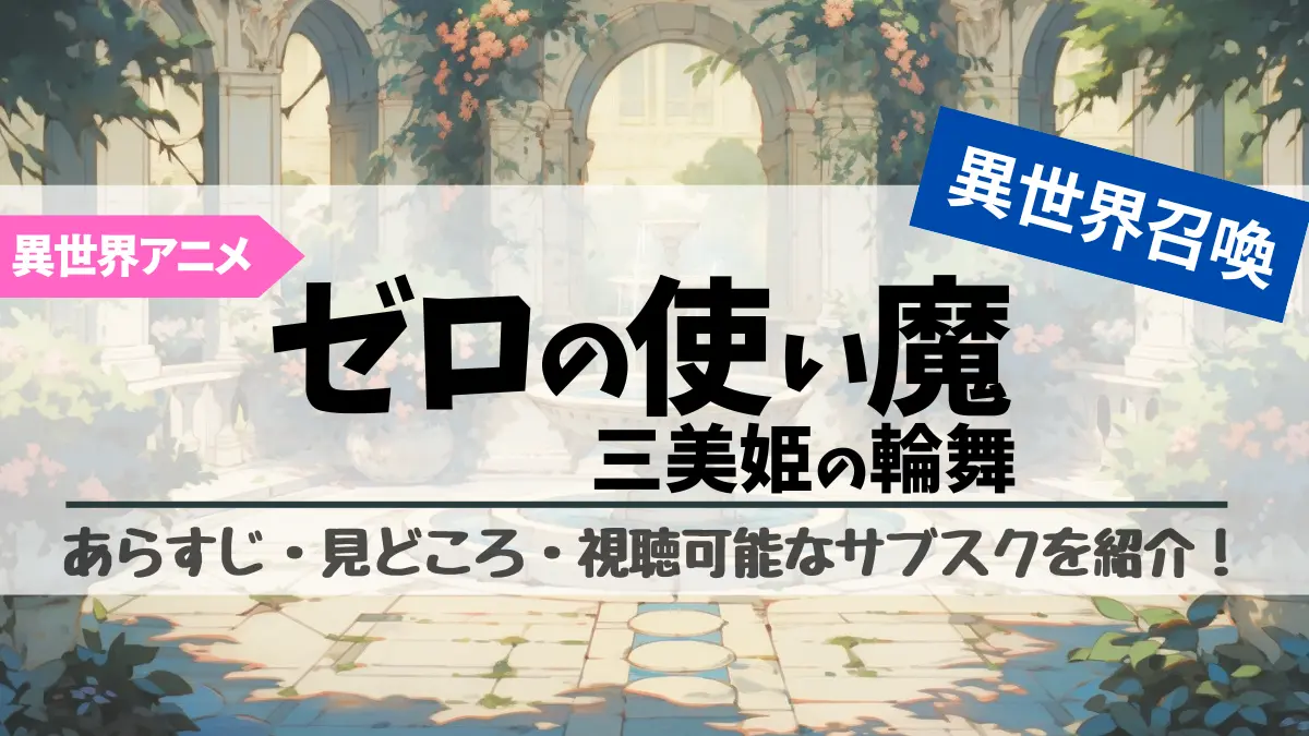 この記事では異世界アニメ『ゼロの使い魔(ゼロ魔)三美姫の輪舞』(第3期)の基本情報やあらすじ・見どころと、視聴可能なサブスク・動画配信サービス(VOD)をまとめましたのでご紹介します。